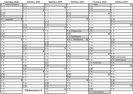 | Kuukausi | Työpäivien lukumäärä | Muut erityiset päivät |