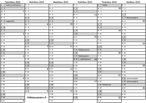 Vuoden 2022 kalenteri